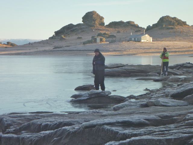 Lower Manorburn Dam at 7.00am Ice still too thin in the