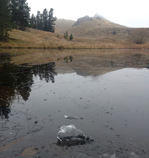 Dam this morning. A skim of ice across the main basin and 12 to 15 mm in