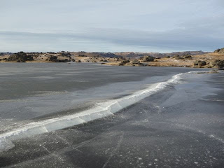 Evelyn is frozen but not quite thick enough. Lake Georgina is completely