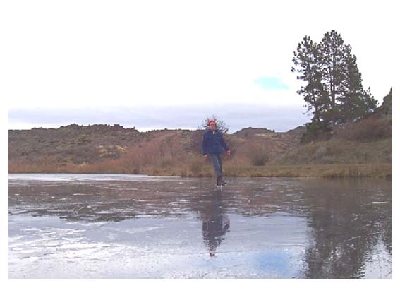 A random pond on the side of the road, there was 2 inches of ice but it was softening around the edges, not safe to skate on | |||