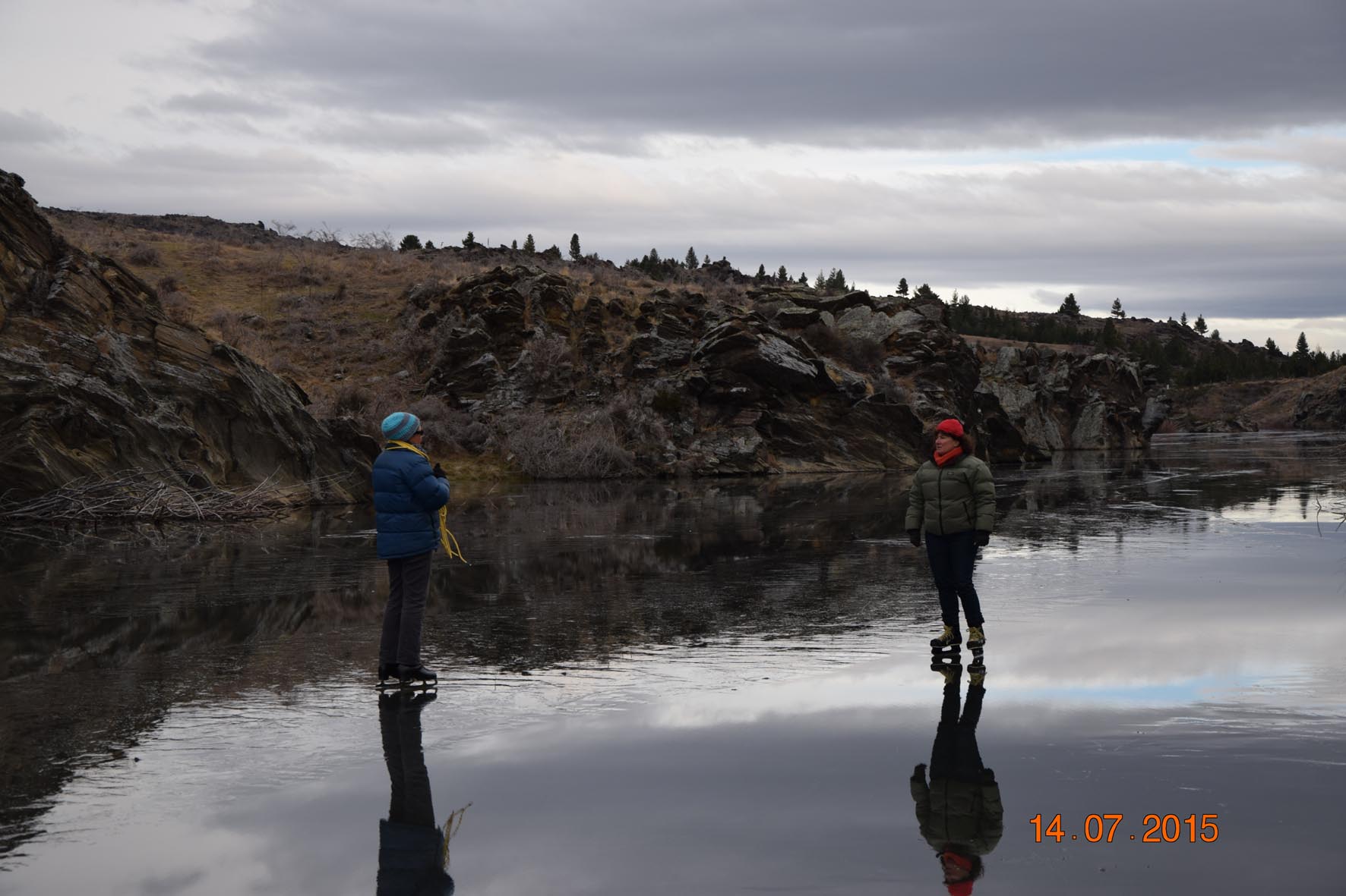 still thick enough to skate. Inge and Jane Mary skating on Idaburn Photo by Inge. |