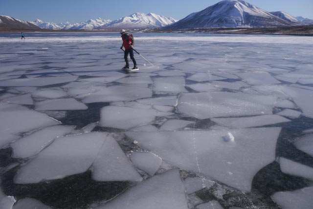 ![]() A 2 meter expansion crack in the ice on Lake camp Photo by Alan Knowles. |