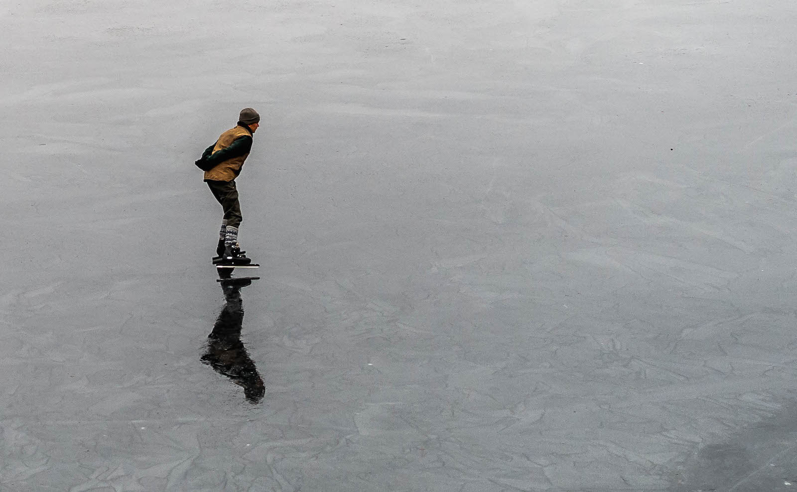 crunch although it didn't impair the skating bliss. A really hard frost this morning will ensure the ice is around for a few more days yet. |
