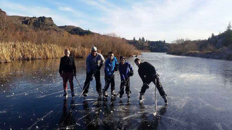 Plenty of ice in the main basin![]() Pond Hockey on Manorburn Dam, Photo by Andrea Kaszala. |