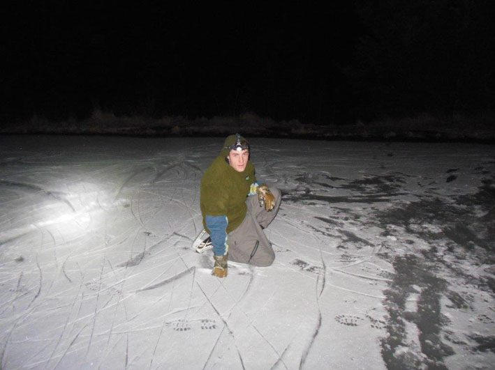 ICE SKATING on NATURAL ICE can be dangerous. Having a tow rope on hand works well for this. More Safety Tips |