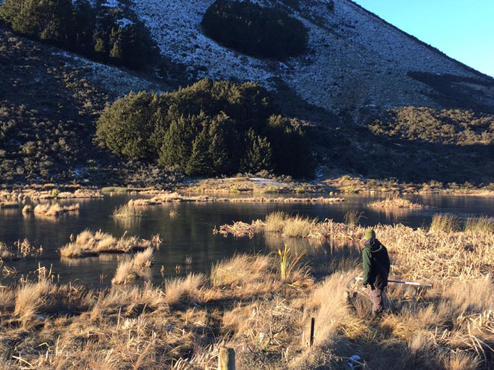 The Main Dam at Poolburn is double ice, a layer of ice