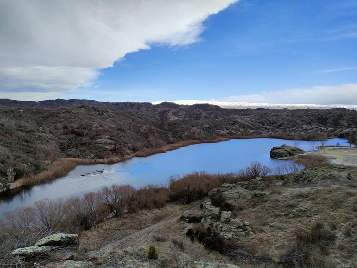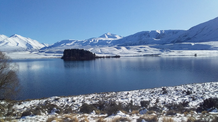 shadow of Mt Ida. The Lake is high and plenty of water was flowing