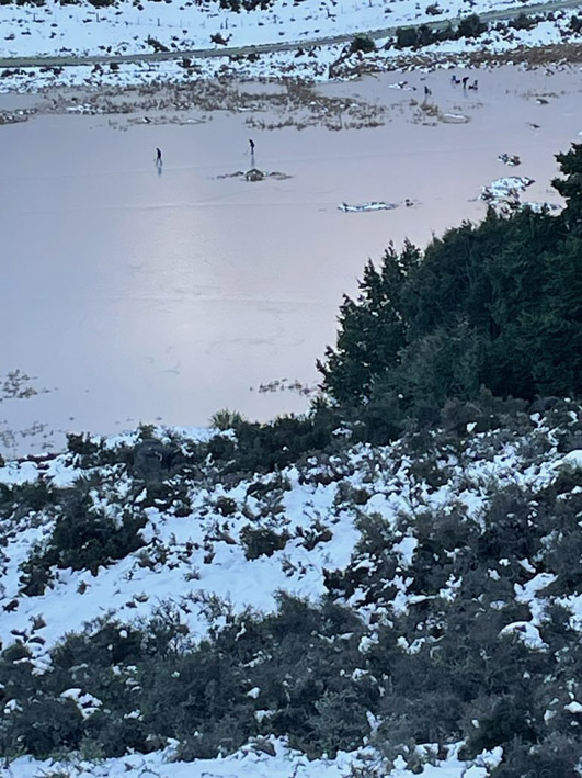 Lake Ida.![]() Dodgy thin snow ice on the Ida Rink. Photo by Liam Ashby |