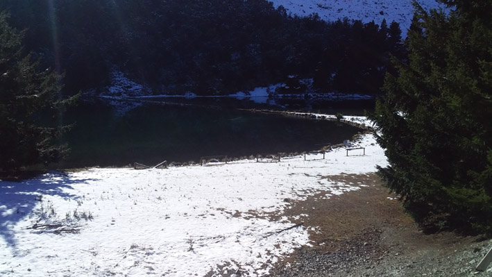Lake Evelyn had about 10mm of weak snow ice over