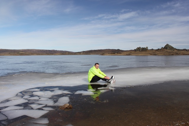 | Thick enough ice on all three basins, good skating on lower and upper basin. Hard but slightly bumpy ice due to melted snow but can be rough in middle basin. Great skate from the pier to upper basin BUT the neck is dodgy. You can walk around or bum over the rock. Would be great in the early morning frost. Water showing near rocks - and as usual take care! It too cold for a swim! | |