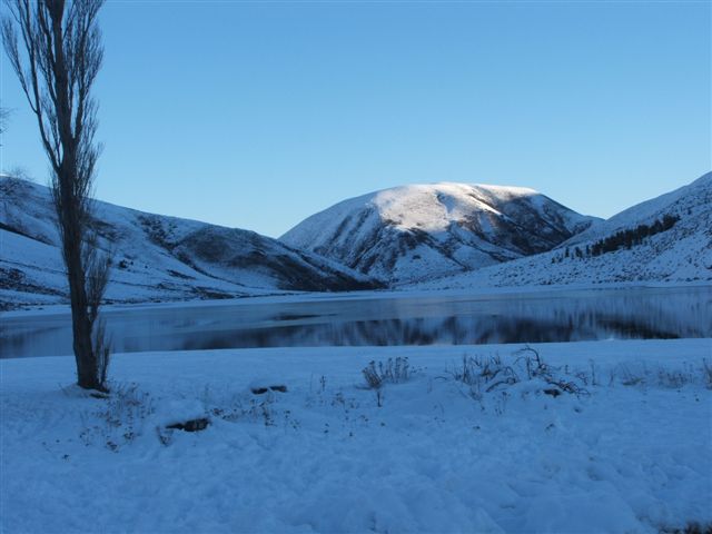 other areas. If frosts continue it will hold. Skate early.![]() Manorburn main basin on a clear Central Otago day Photo by Dave Young |