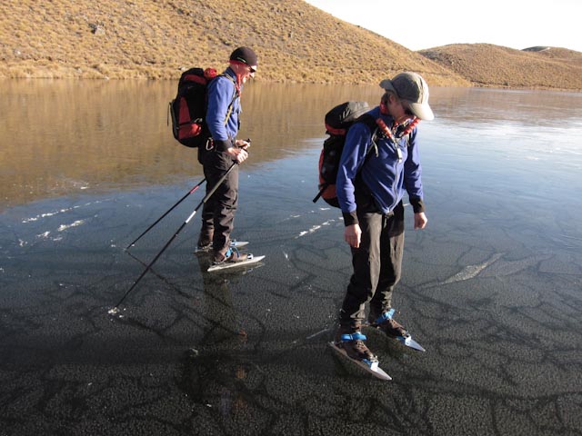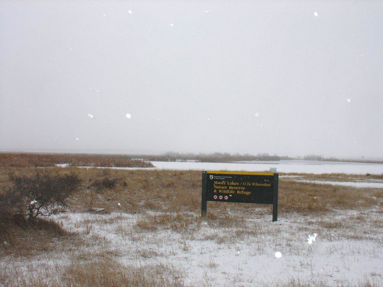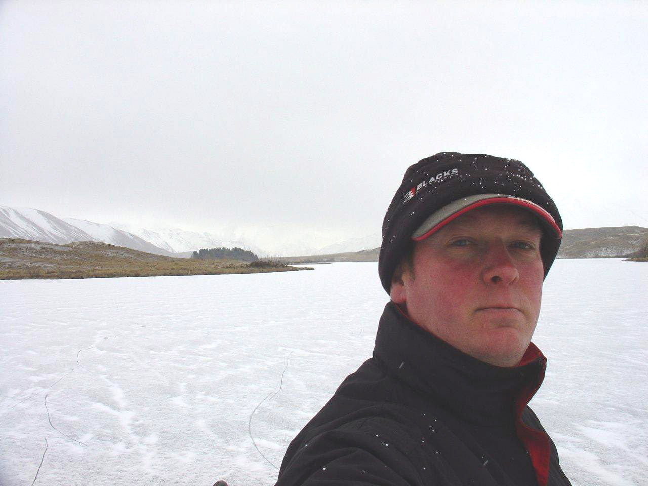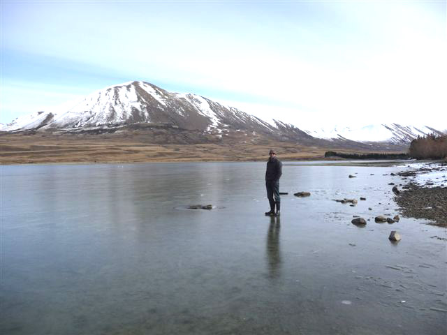 see. About 25mm of ice.![]() Woops, a bit thin to skate on!!!!! Photo by Glen Cameron ![]() Light snow at the Maori Lakes today , Photo by Glen Cameron |