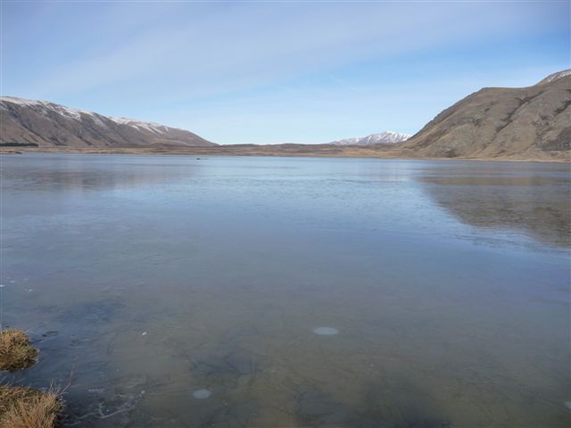 Lower Manorburn Dam at 7.00am Ice still too thin in the