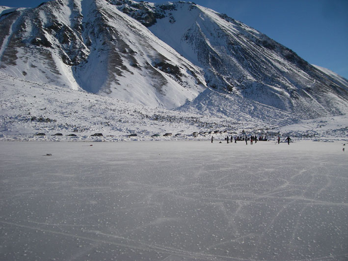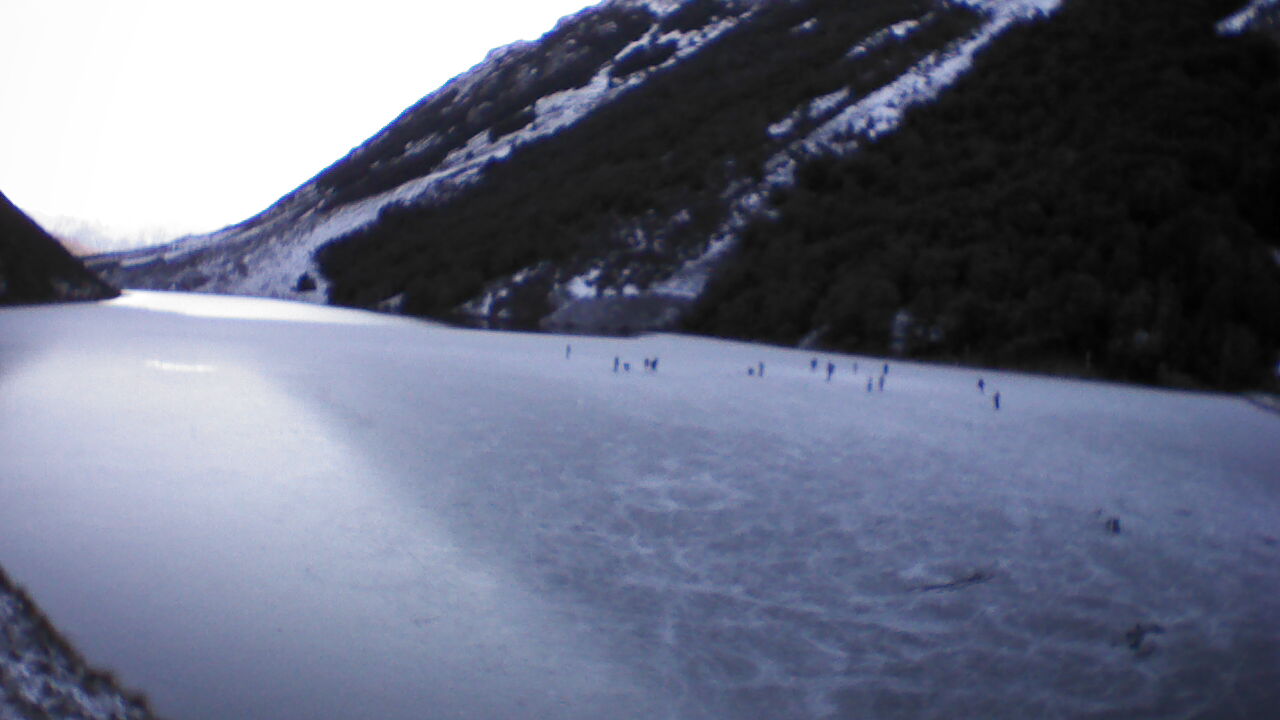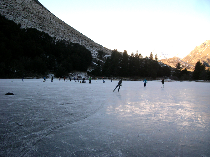 is snow due tomorrow so conditions will change quickly. Lake Evelyn was mostly frozen however round the edges there was not enough ice to support getting on, about 40mm of black ice. The Ice Hockey game and some figure skating. Photo by Clive Murphie ![]() Looking down to the Western end of Lake Ida. Photo by Michael Row by Quadrocopter |