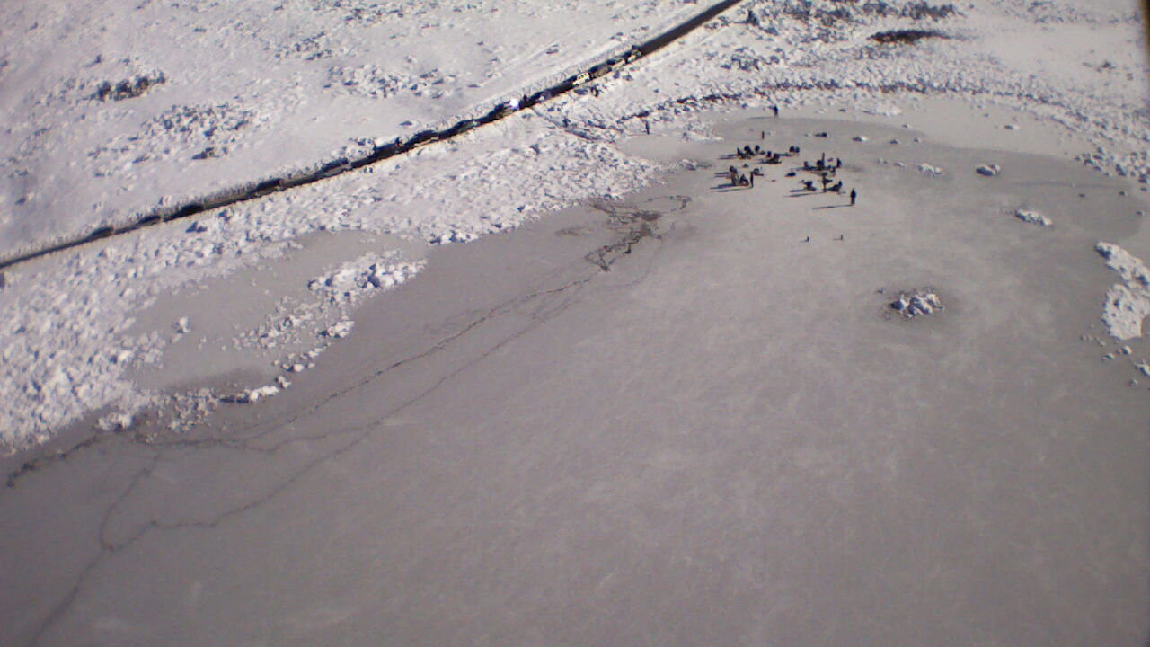 | Lake Lyndon has some surface ice with a lot of open water, there is no way on to what looks like good ice (strength and thickness unknown) !!! | |