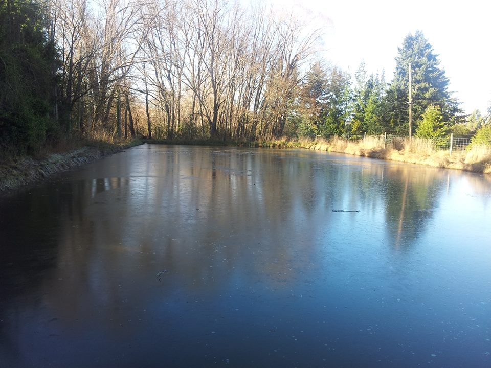 Dam this morning. A skim of ice across the main basin and 12 to 15 mm in