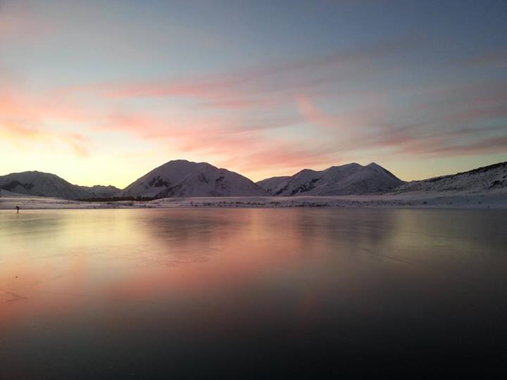 | Lake Pearson has a frozen slurry over the Lake, no signs of ice yet at Lake Lyndon but there is still ice on all the puddles round the Lake, the temp is down to 4 degrees at midday, with snow and ice all through Porters Pass. | |