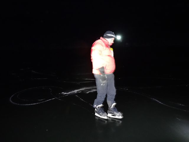 skating, snow ice over 60mm of black ice, with 4 of us skating the ice made