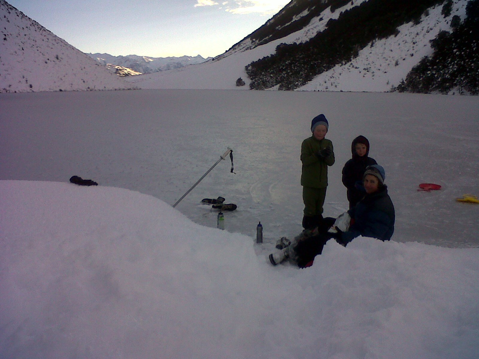 | Most of the Lake has about 25mm of nice clear (see through) ice covering most of the Lake, but there are a couple of currents running by the shore not frozen. Not quite skateable yet but I'd say its not far away! Next report Wednesday on the return trip. | |
