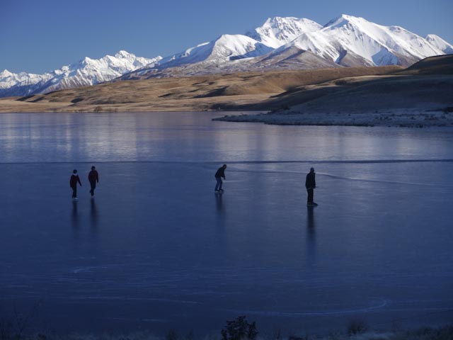 to play around a bit and good to see some of the locals out on the ice. Weather outlook is not too flash though and these last days might be the best we get this winter....Lower Manorburn - up to 65mm out in the main basin. Good skating but weakening in warmer temps. Editors Note: Check out Dave's blog at chipofftheiceblock for a cool video of the enjoying the ice on Manorburn today. Dave getting a lean on!!! and some locals at Manorburn today Photo by Dave Young |
