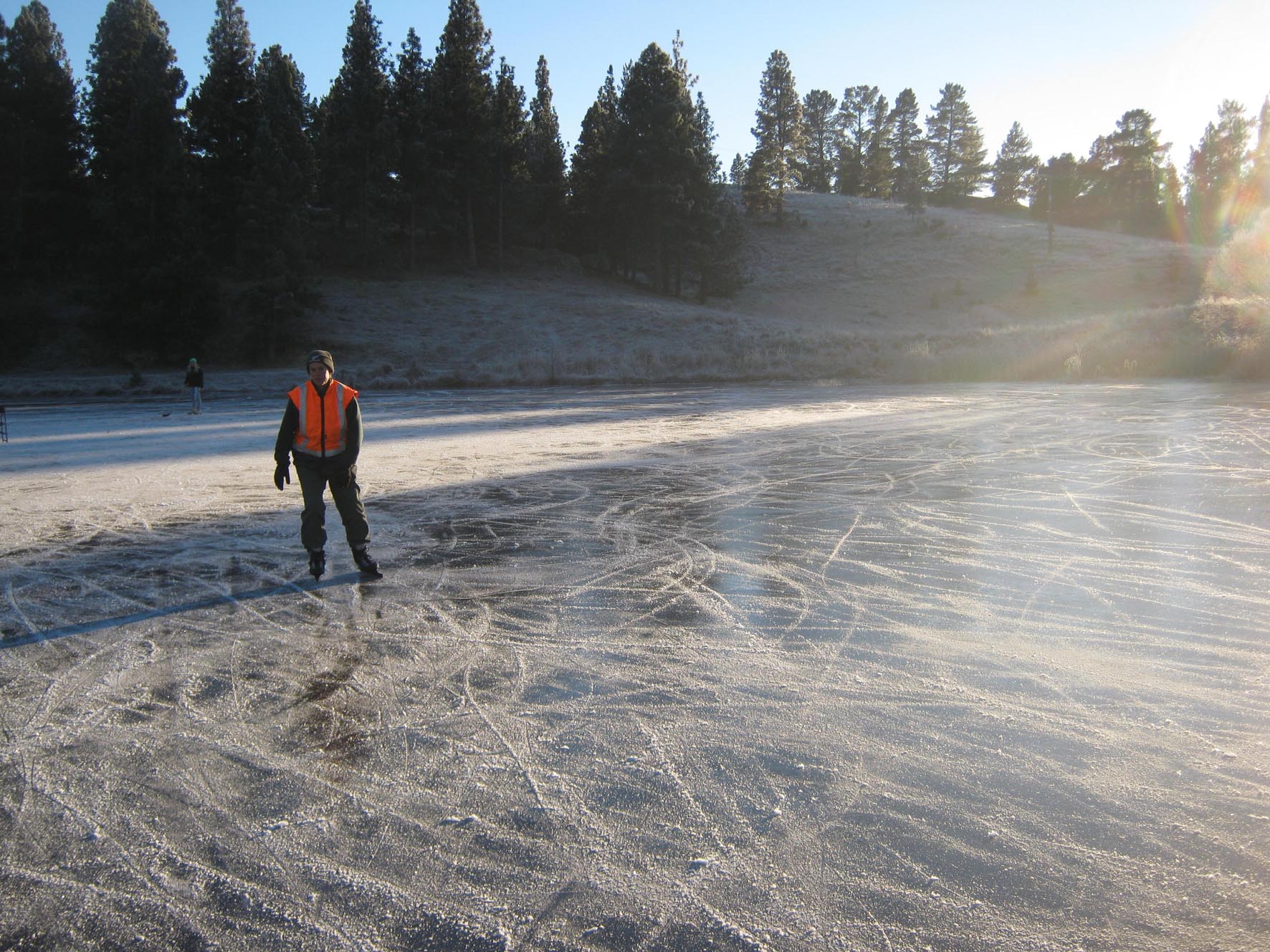 natural ice rink Ted and Glen enjoying some natural ice, Photo: Glen Cameron |