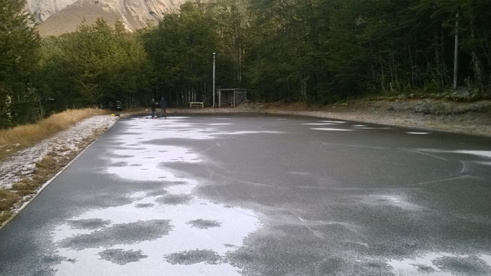 the Mt Cheeseman ice rink, about 100mm of good strong ice with a light