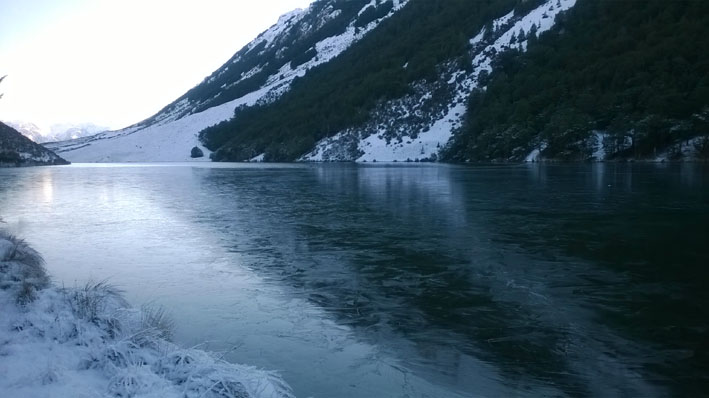 the size of a table tennis table, the rest of the lake had about 20mm of ice