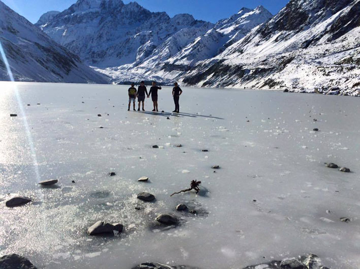 on it as it has a rough surface.![]() Tasman Glacier Lake in bright sunshine. Photo by Kloe Palmer. |
