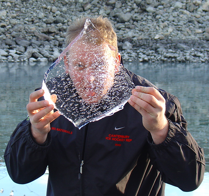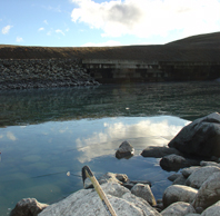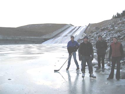 Skate on ice where you find it. This is the bottom of Lake Pukaki Spillway. |