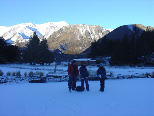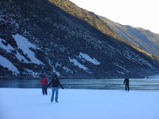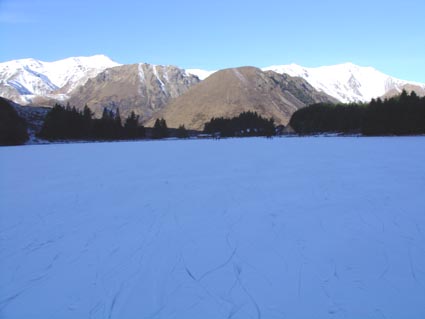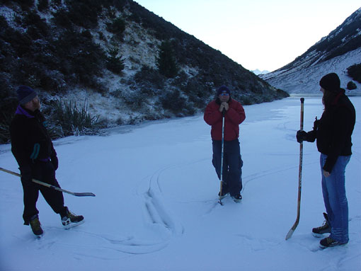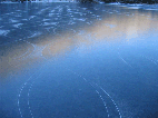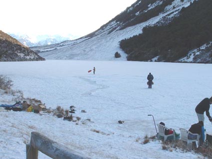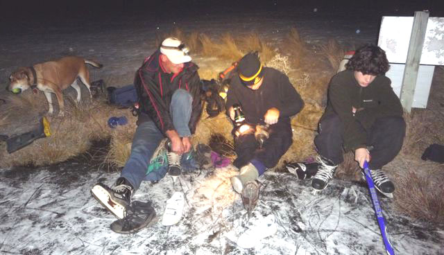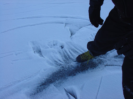| Look at all that great black ice. | Bugger: not enough to skate on it. | Lots of snow on top of the ice | Break time on the second lap of Lake Ida | |||