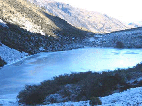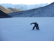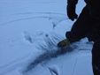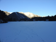 | On the way back from Little Lake Ida | What's left of frozen Lake Ida, the orange bit in the middle are the car keys to give you an idea of scale | |||||