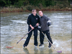 Craig and Janos at Lake Ida on the Hockey pond. Ice on the lake Ida Hockey Pond and Enclosure some on the main lake. |